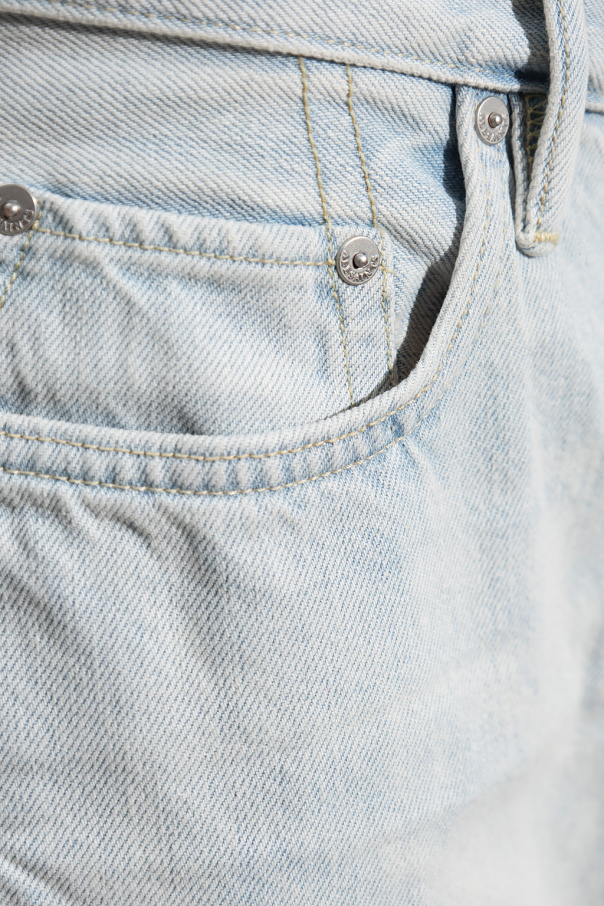 Light blue ‘Curtis’ jeans from AllSaints. Fastened with buttons, this pair falls down with slightly tapered legs and is complete with three front pockets and two back pockets.