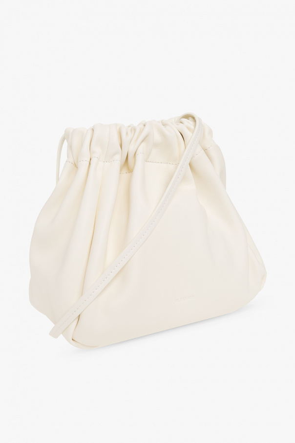 White ‘Scrunch Small’ shoulder bag from Jil Sander. Made of leather, this model features snap fastenings, scrunch details at the top, embossed logo, detachable shoulder strap, gold-tone metal hardware and one internal compartment with one card slot.