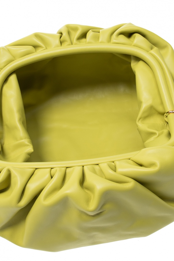 Green ‘The Pouch' clutch from Bottega Veneta. Crafted from calf leather, this design fastens via magnetic press-stud and features gold-tone metal hardware and leather clad interior with one compartment.