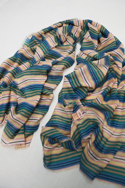 в белую желтую голубую зеленую полоскусостав: 50 % шерсть, 50 % шелк