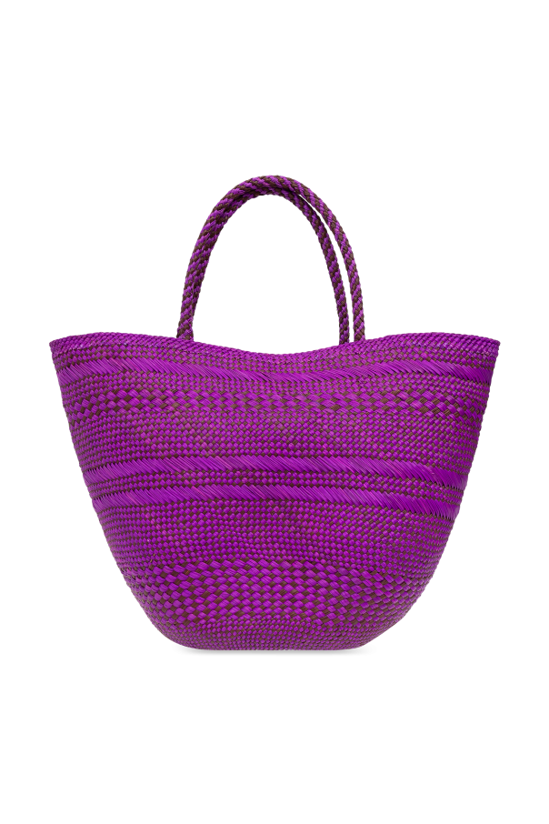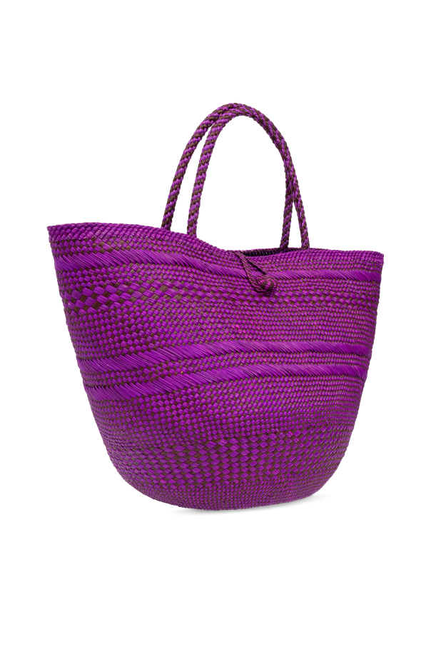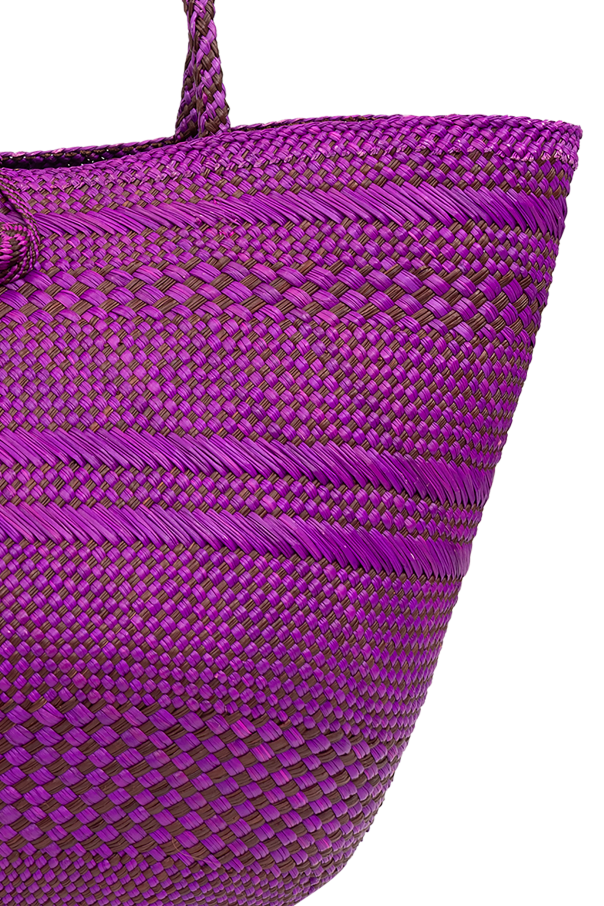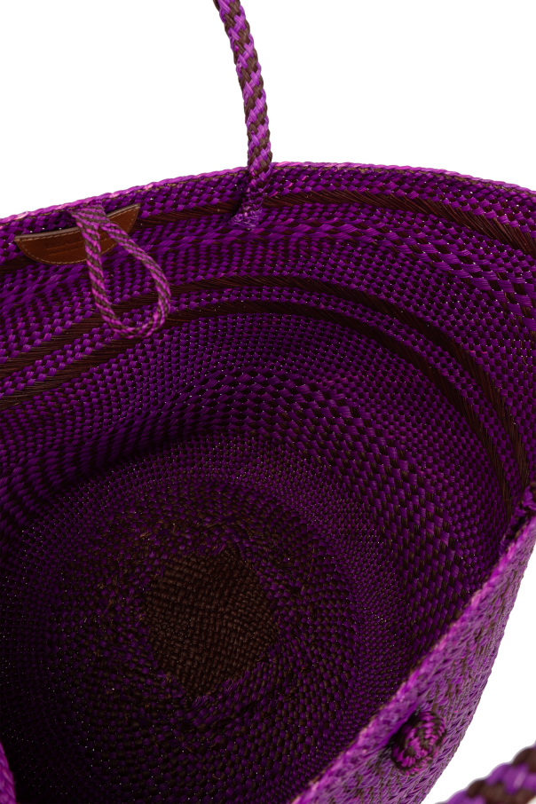 Introducing the Large Marta Shopper, a masterpiece of design by the acclaimed Ulla Johnson. This exquisite bag, distinguished by its vibrant purple hue, is meticulously crafted from 100% Irish Palm, ensuring both durability and a touch of nature's elegance. The bag's unique woven pattern, featuring horizontal stripes of varying textures, creates a visual depth that is both captivating and chic. The Large Marta boasts a distinctive shape, with a broad opening that gracefully tapers towards a rounded bottom, emblematic of the shopper style. This design not only enhances the bag's aesthetic appeal but also provides ample space and ease for storing and retrieving items. Complementing its cohesive look, the bag features two robust handles woven from the same Irish Palm material, offering comfortable carry and a harmonious appearance. A subtle closure mechanism, possibly a drawstring or another innovative type, ensures the security of your belongings while adding an element of intrigue to the bag's design. The absence of overt brand markings underscores the bag's sophistication, allowing the quality of craftsmanship and the precision of the weave to speak for themselves. Why Purchase the Large Marta Shopper? Eco-Friendly Material: Made from 100% Irish Palm, promoting sustainability. Unique Weave Pattern: Adds depth and visual interest, making it a standout accessory. Spacious Design: Its shopper style ensures ample space for all your essentials. Security: Equipped with a closure mechanism to keep belongings safe. Exclusivity: Crafted without overt branding, highlighting its unique design and craftsmanship. Interior Compartment: Features an inside chamber for better organization.