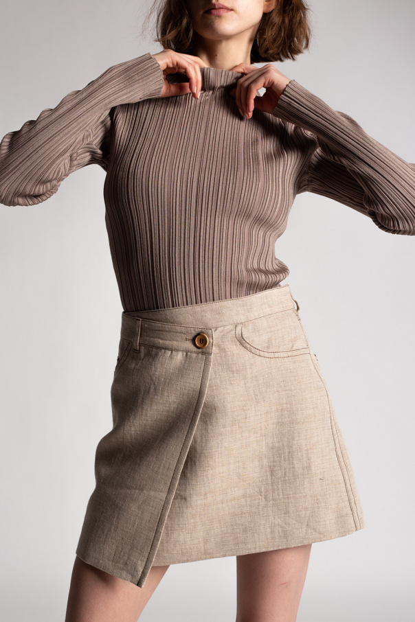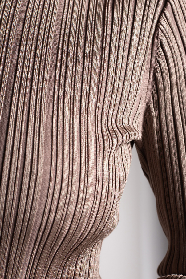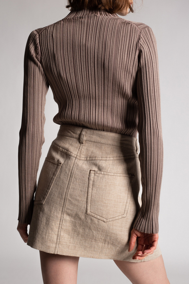 Brown top from Acne Studios. Made of slim-fitting ribbed jersey, this style features a band collar and long sleeves.