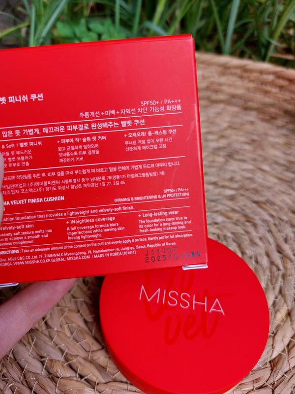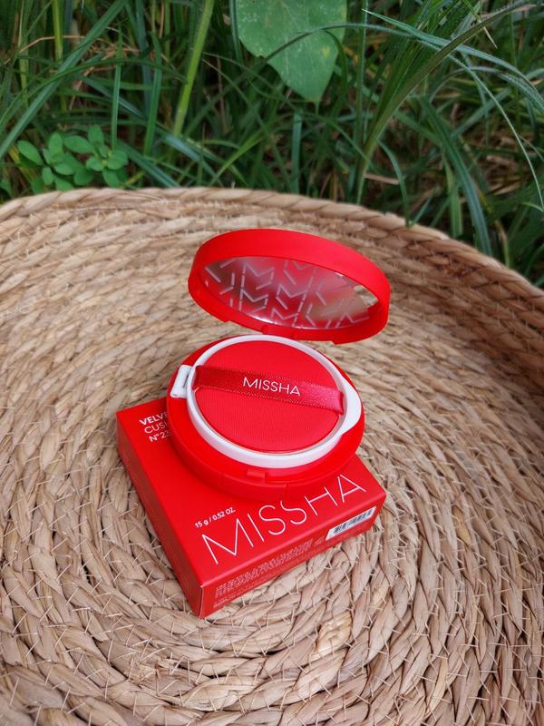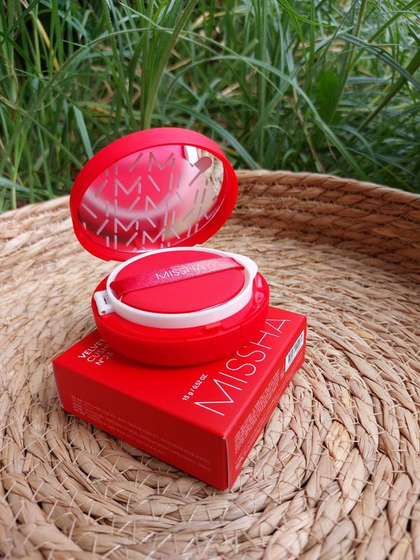 MISSHA Velvet Finish Cushion Кушон для лица с матовым финишем SPF50+/PA+++ №23, 15 гр. Он эффективно маскирует несовершенства кожи, выравнивает её тон и улучшает цвет. Он не только матирует кожу, но и увлажняет её, избавляет от болезнетворных проявлений, сухости, шелушения, избыточной жирности, пигментаций и других несовершенств. Средство наносится нежной пуховкой, которая выполнена из специального материала с антибактериальными свойствами. Из такого же безопасного и гипоаллергенного материала выполнен и спонж-подушечка, который пропитан тональным средством. Высокий уровень защиты SPF50+ PA+++ надежно защищает кожу от вредных УФ-лучей.Эффективные ингредиенты: