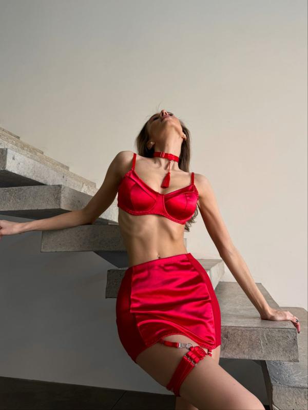 Адже в ньому ти відчуваєш себе королевою▪︎Комплектація: бюстик+ трусики+спідничка+ підвязки+чокер