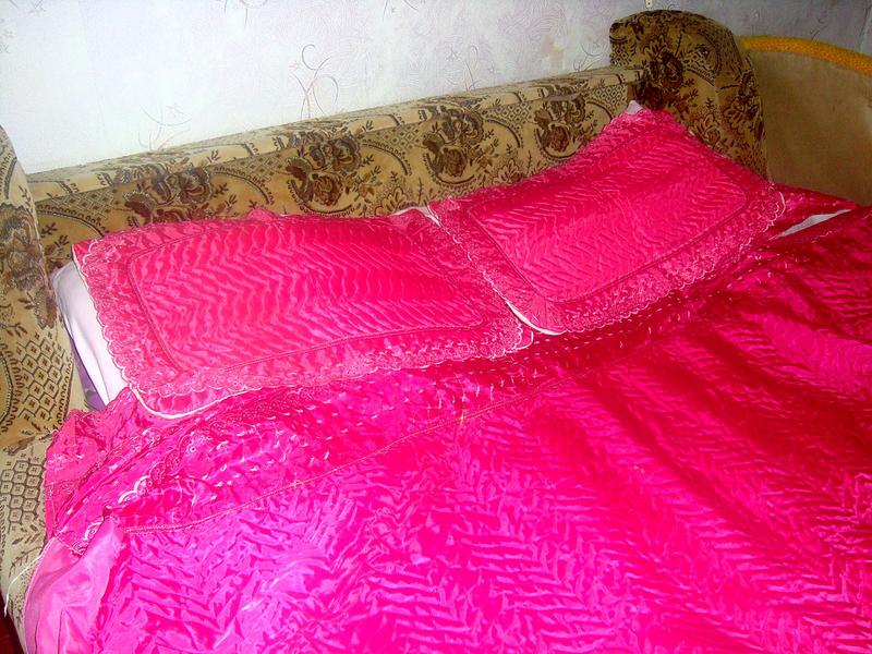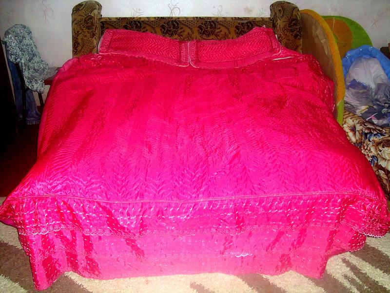 Продаю красивое покрывало и две наволочки. На краях резинка. В хорошем состоянии, но есть небольшой дефект, еле заметный.