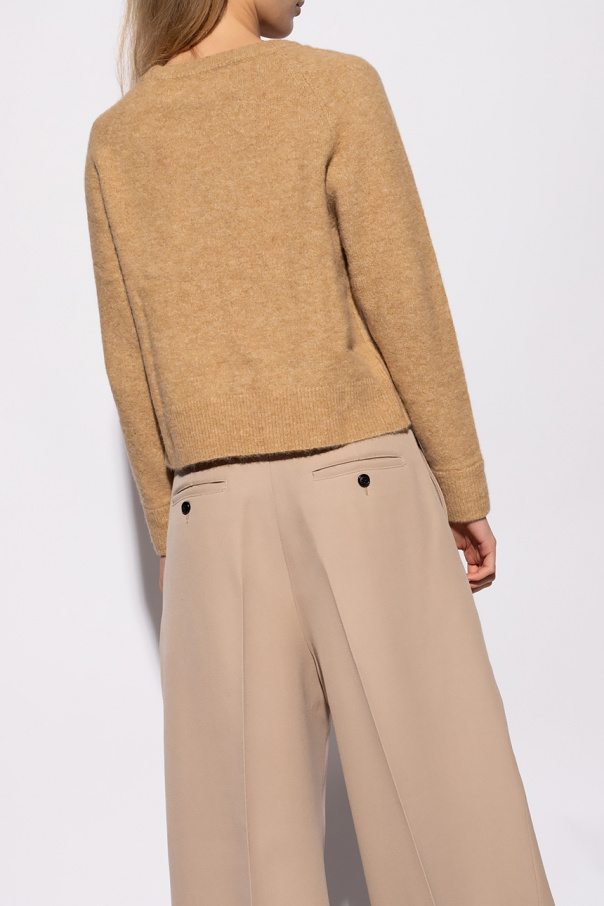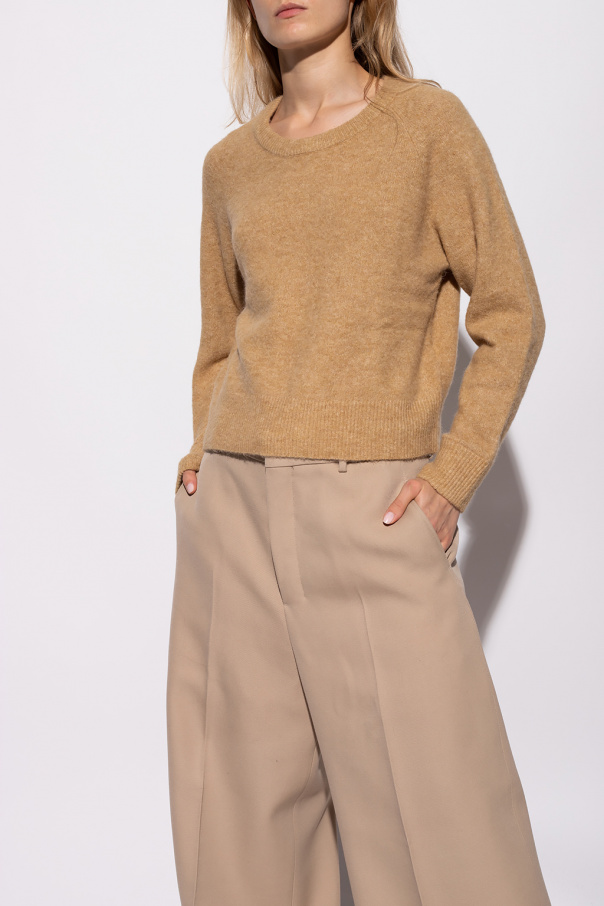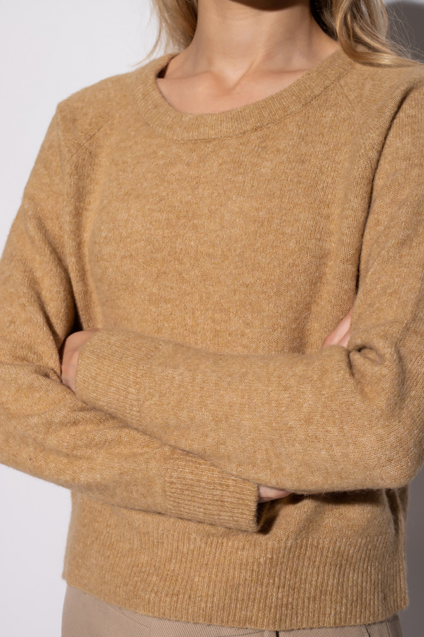 Beige and brown sweater from Samsoe Samsoe. Crafted from a merino wool blend, this crewneck design is complete with ribbed trims at the hem and cuffs.