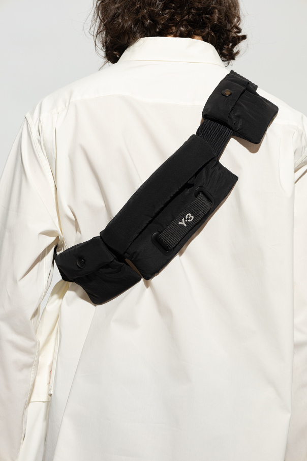 Black belt bag from Y-3 Yohji Yamamoto. Crafted from recycled material, this design consists of three separate pouches: one has a zip closure and logo detail, two have a flap with a snap closure. The design is complete with an adjustable strap with a buckle and silver-tone metal hardware.