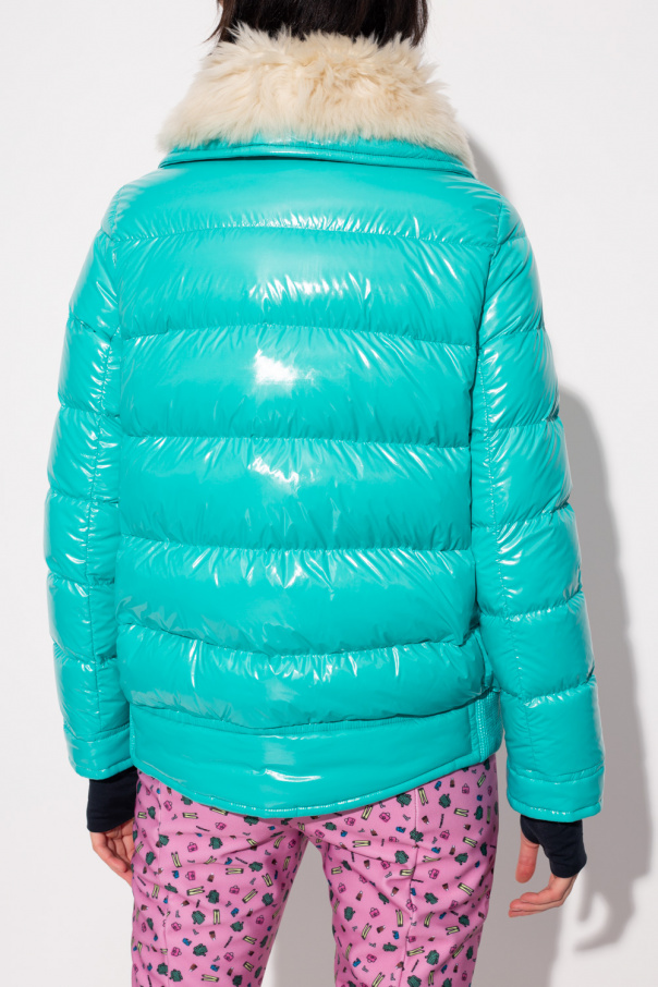 Blue ‘Arabba’ down jacket from Moncler Grenoble. Fastened with a two-way zip and snaps, this garment features a sheep fur collar, sleeve patch with a logo, three zip pockets, long sleeves with ribbed cuffs and thumbholes and an elasticated hem. The jacket has insulating, water- and wind-proofing properties.
