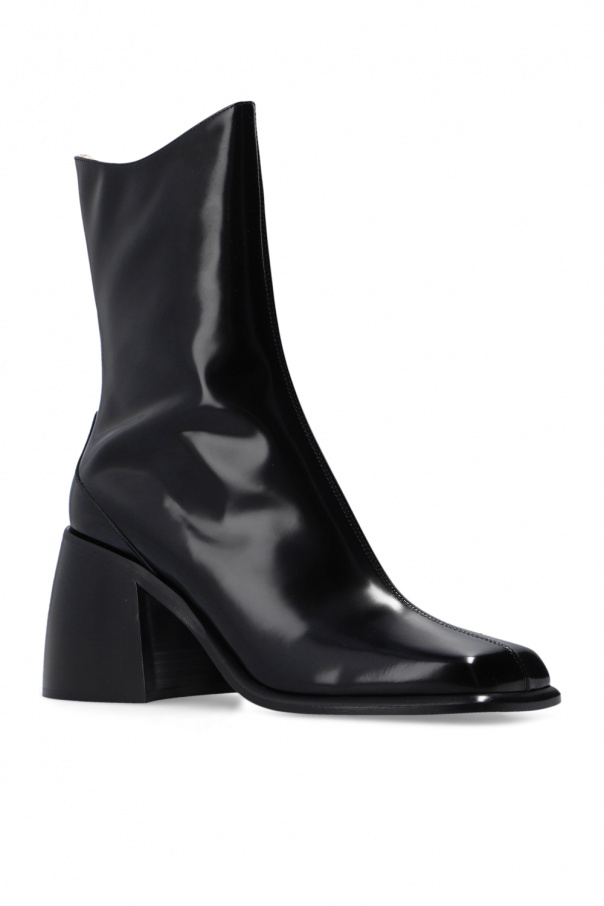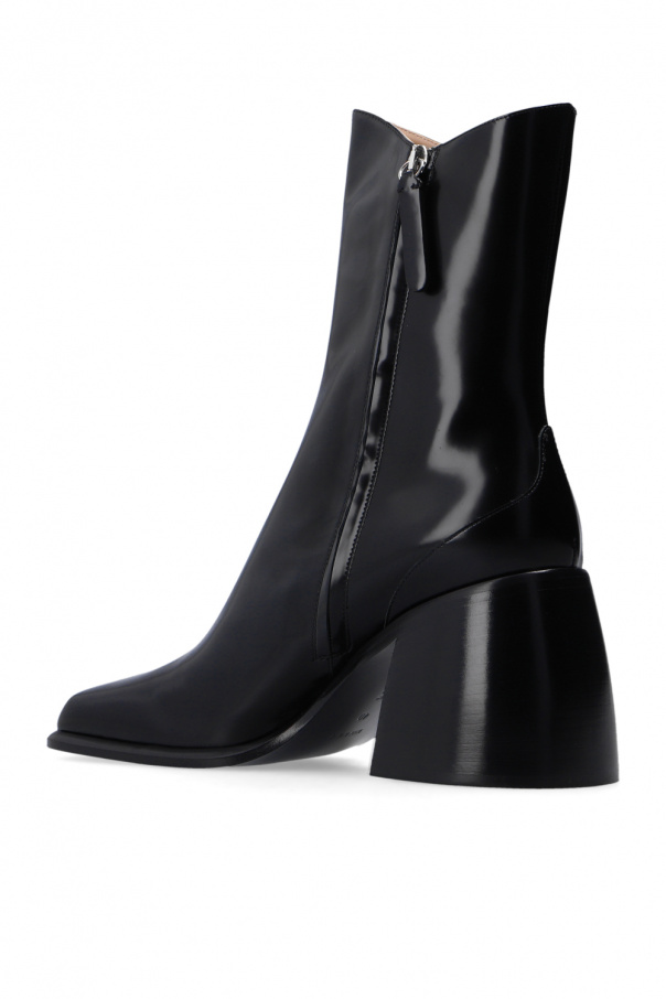 Black ‘Ella’ heeled ankle boots from Wandler. Crafted from goat leather, this model showcases a square toe, a side zip closure, a black leather sole and a cream lining.
