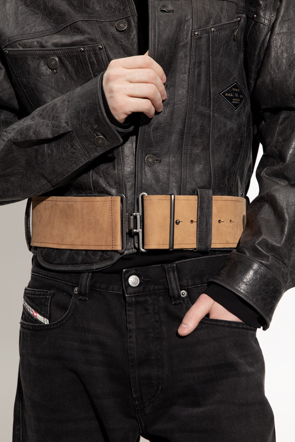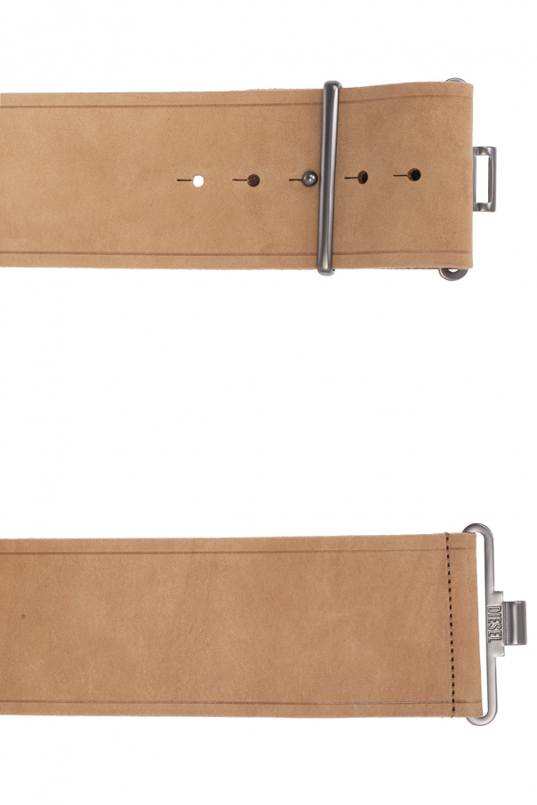 Light brown ‘B-Army’ belt from Diesel. Crafted from cow leather, this item fastens with a metal logo-embossed buckle.