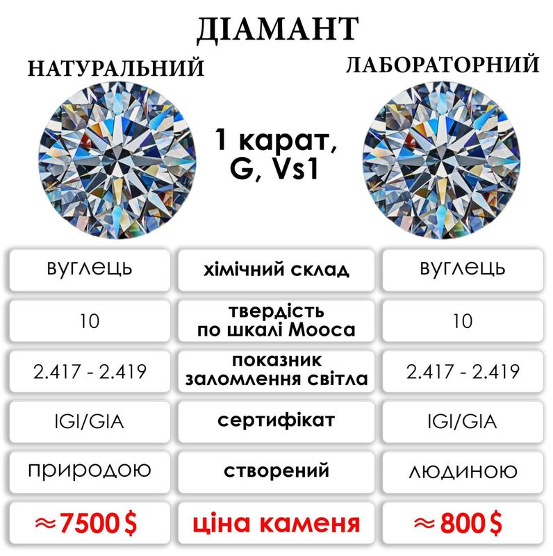 Лабораторные бриллианты CVD/HPHT абсолютно по всем характеристикам идентичны натуральным. Разница только в том что их создал человек, а не природа. Цена лабораторного бриллианта в разы ниже природного.