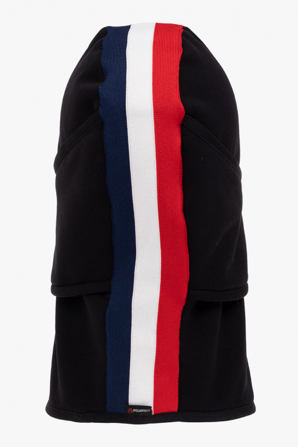 Black balaclava from Moncler Grenoble, the ‘Moncler Grenoble Performance & Style’ collection. Crafted with Polartec® Power Stretch® Pro™ - a fabric with a 4-way stretch which absorbs moisture from the skin while continuously wicking it to the outer layer for fast evaporation, this item offers waterproof and windproof properties and features a logo patch and the brand's signature navy blue, white and red stripe detailing.
