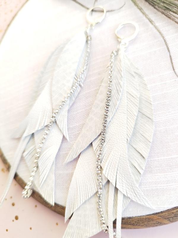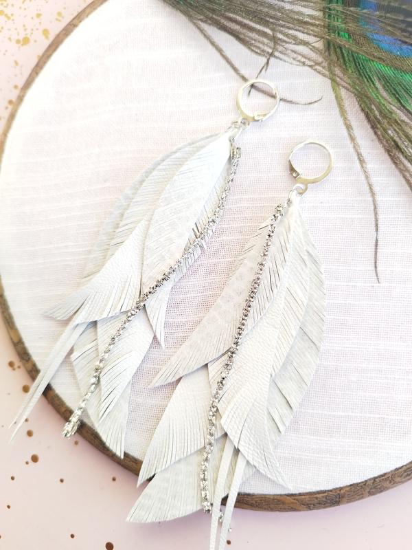 Нежные и легкие серьги-пирачко из тончайшей итальянской кожи ш стразовой цепочкой. Длина 12 см., возможно исполнение меньшей длины. Надежная красивая подарочная упаковка.