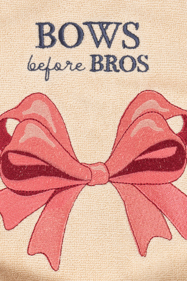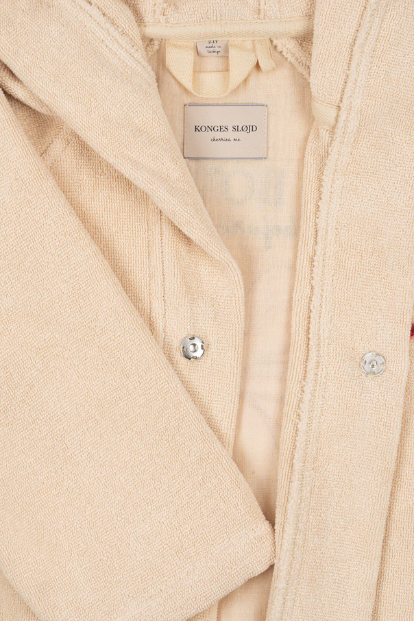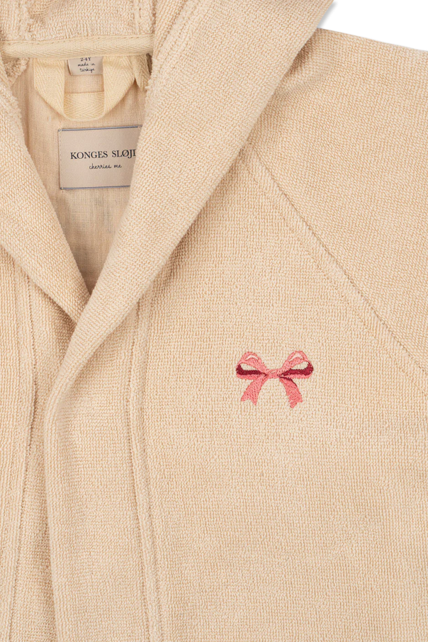 Introducing the Creamy Embroidered Robe, a hallmark of luxurious comfort by the esteemed Danish brand, Konges Sløjd. Crafted from 100% organic cotton, this robe epitomizes supreme softness, ensuring a cozy embrace for your little one. Designed with a hood, long sleeves, and a tie belt, it blends functionality with elegance. A delicate pink bow embroidery graces the front, complemented by a larger print and the whimsical inscription "BOWS before BROS" on the back, adding a playful touch to its sophisticated cream-beige hue. Founded by Emilie Konge, Konges Sløjd is renowned for sustainable production and exquisite detail. This robe not only promises warmth but also reflects a commitment to eco-friendly fashion, adorned with unique prints and crafted with care. Why Choose This Product? Made from certified organic cotton Adorned with charming embroidery and prints Ethically produced with sustainability in mind Perfect blend of style and comfort for children