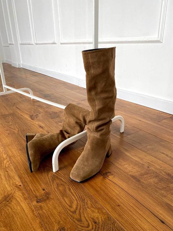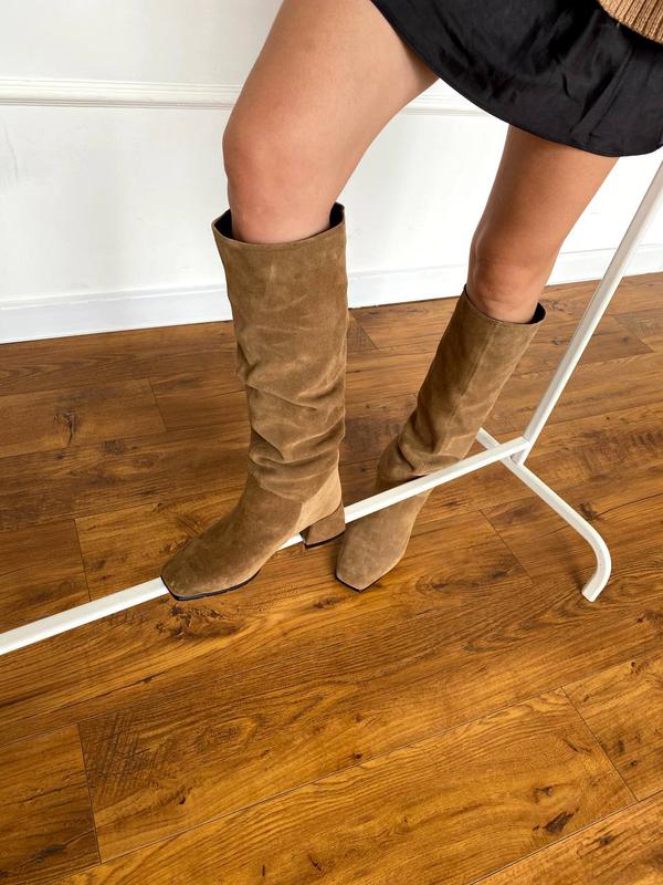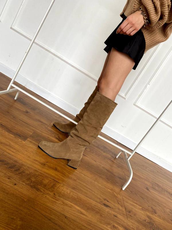 Матеріал верху:Замша ,Матеріал підкладки:Байка , Хутро ,Тип підошви:Каблук ,Стан: НовийКолір:- Коричневий