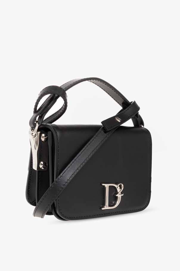 Black shoulder bag from Dsquared2. Made of calf leather, this model fastens with a magnetic snap and is decorated with a logo detail. It is complete with a back pocket, half-round handle, detachable and adjustable shoulder strap, silver-tone metal hardware and one internal compartment with one card slot.