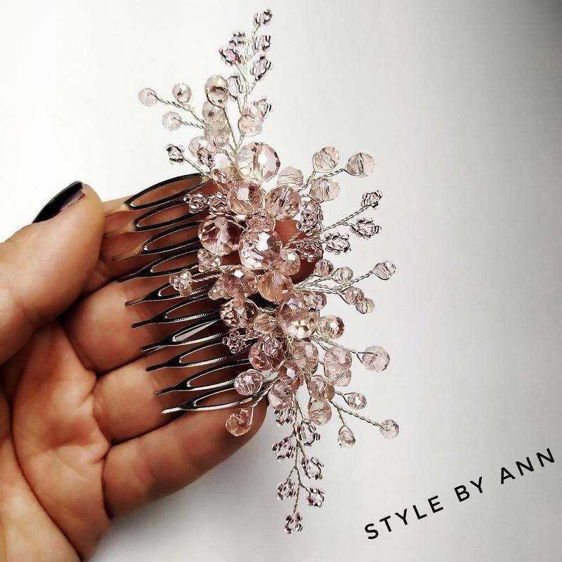 Гребень создан с хрустальных бусин, чешского бисера и ювелирной проволоки. Так же возможен в другом цвете. Для полного комплекта могу дополнить серьгами и браслетом.