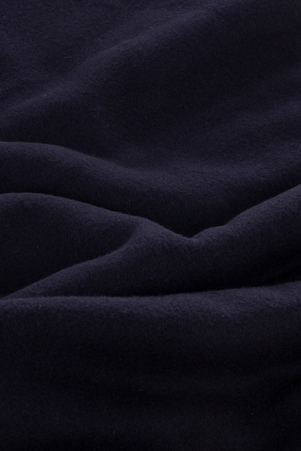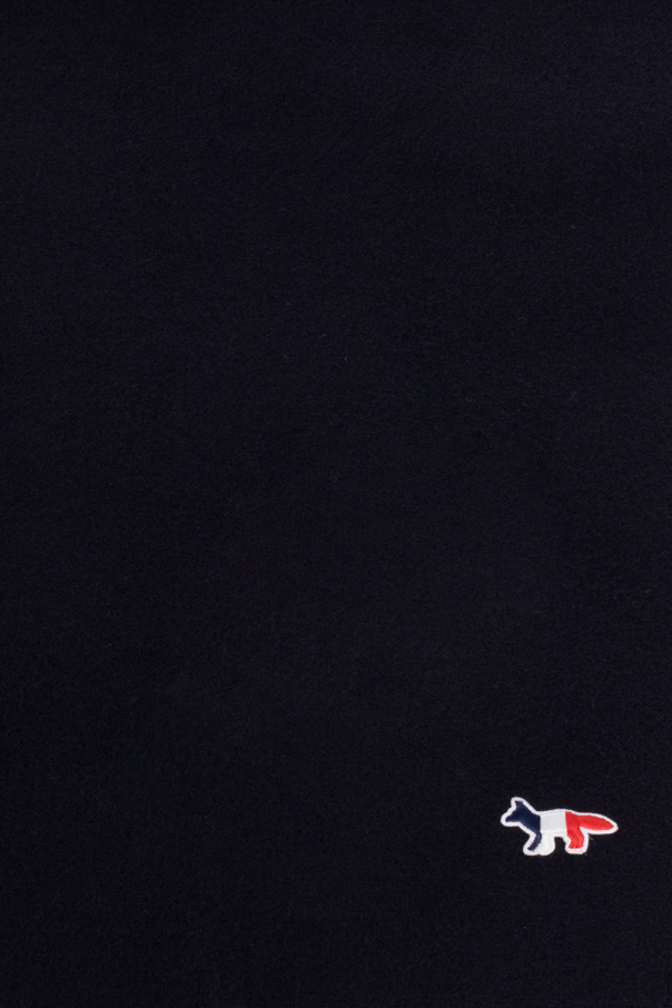 Navy blue scarf from Maison Kitsune. Made of wool, this item features a logo patch and fringed edges.