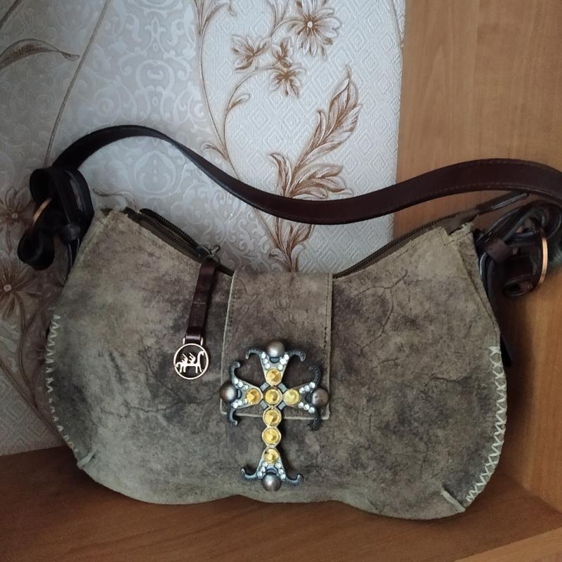 Винтажная кожаная женская сумочка в этническом стиле. Стан идеален. В середине много отделений. Замочек исправный. Высота ручки регулируются.
