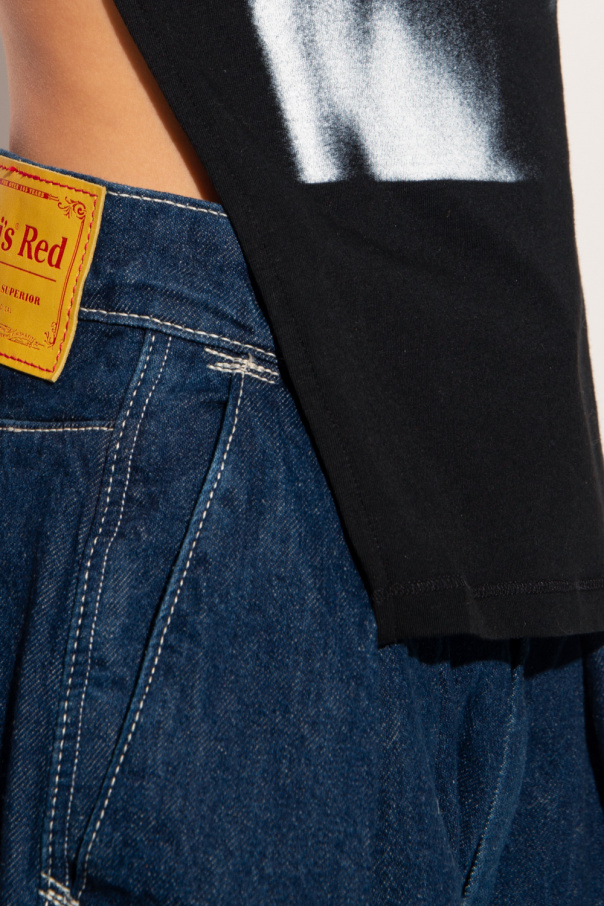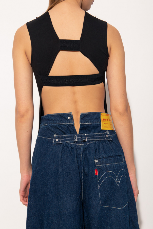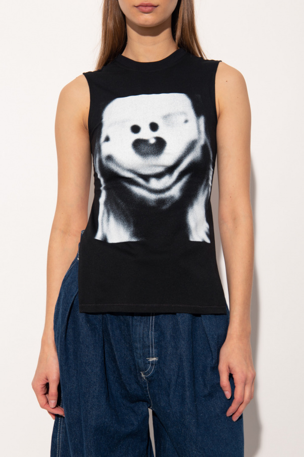 Black crewneck sleeveless top from 1017 ALYX 9SM. Crafted from cotton, this style is enriched by cut-out detailing and a white and grey graphic print.