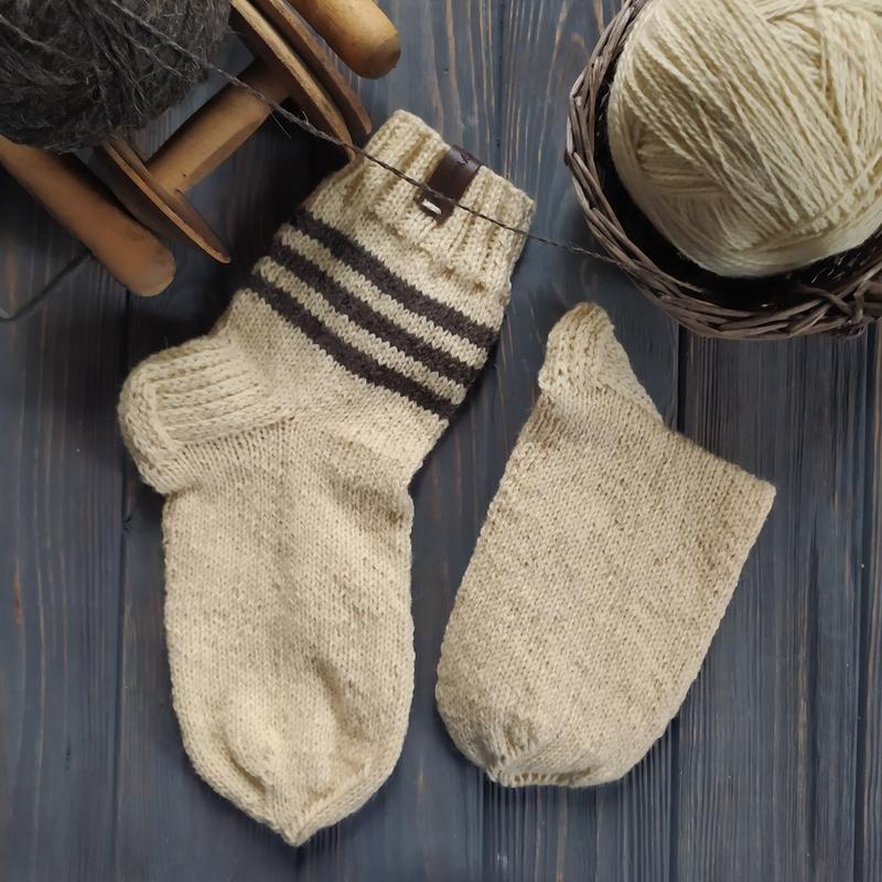 Класичні натуальні 100% вовняні носочки надзвичайно гарного молочного кольору з темними смужками.