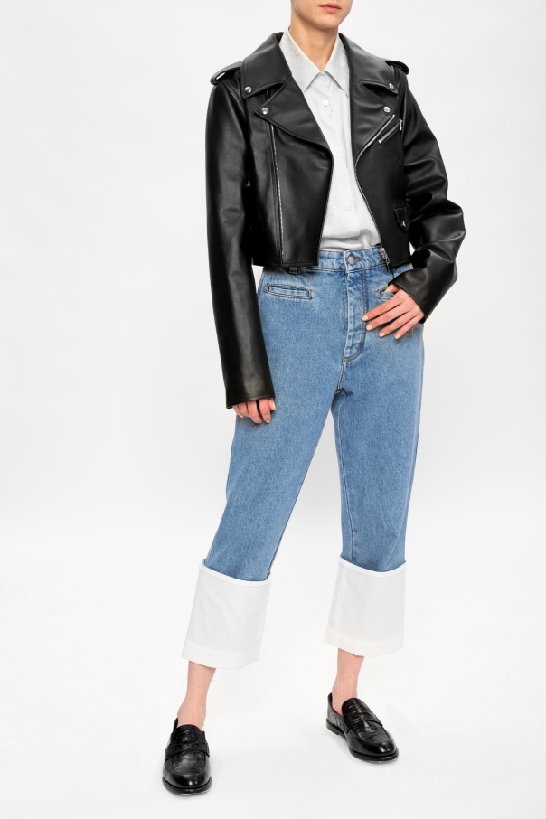 Black loafers from Loewe. Crafted from leather, this pair sits on a beige leather sole and showcases a cut-out strap on the vamp.