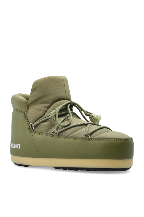 Introducing the MB EVX Pumps Nylon, a masterpiece by Moon Boot that captures the essence of both elegance and functionality. These sublime green snow boots are designed with a unique, rounded silhouette and a robust, yellow-tinted sole, ensuring optimum insulation from the cold. Crafted from premium nylon, they promise warmth and water resistance, making them perfect for harsh winter climates. The minimalist design, adorned with the iconic "MOON BOOT" logo in white, exudes an understated sophistication. The thick laces add a touch of sporty flair, enhancing their versatility. Inside, the plush lining offers unparalleled comfort and additional cold protection, making every step a delight. Why Choose This Product? Timeless Design: A tribute to Giancarlo Zanatta's iconic 1970s creation. Superior Comfort: Luxuriously lined interior for cozy warmth. Exceptional Craftsmanship: Durable nylon exterior and rubber sole. Distinctive Style: Bold green hue with signature branding.