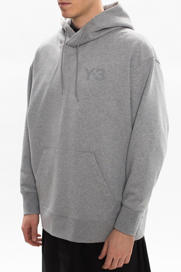 Grey hoodie from Y-3 Yohji Yamamoto. Made of cotton, this garment features a front pocket, logo print and ribbed trims at the hem and cuffs.