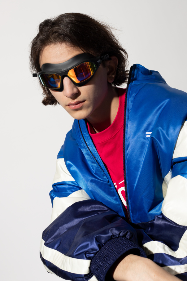 Black swimming goggles from Y-3 Yohji Yamamoto. Printed with the brand's logo in white, they feature a wide field of vision, polycarbonate lenses in orange and a silicone strap which allows for an easy one-handed adjustment.