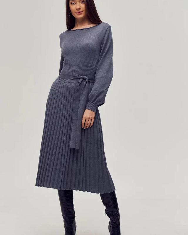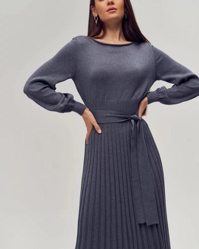 🔥Приталений крій сукні дозволить створити елегантний образ. Рельєфний смугастий візерунок спідниці візуально вибудовує силует вертикаль, роблячи образ графічнішим👌