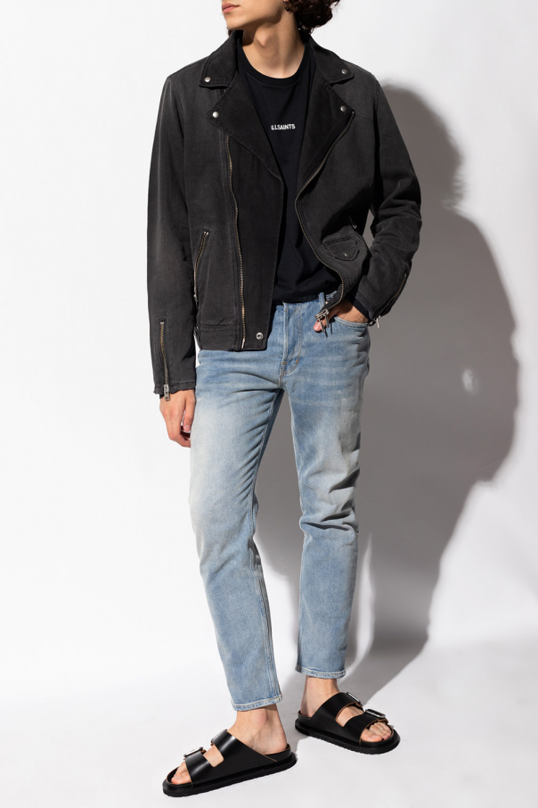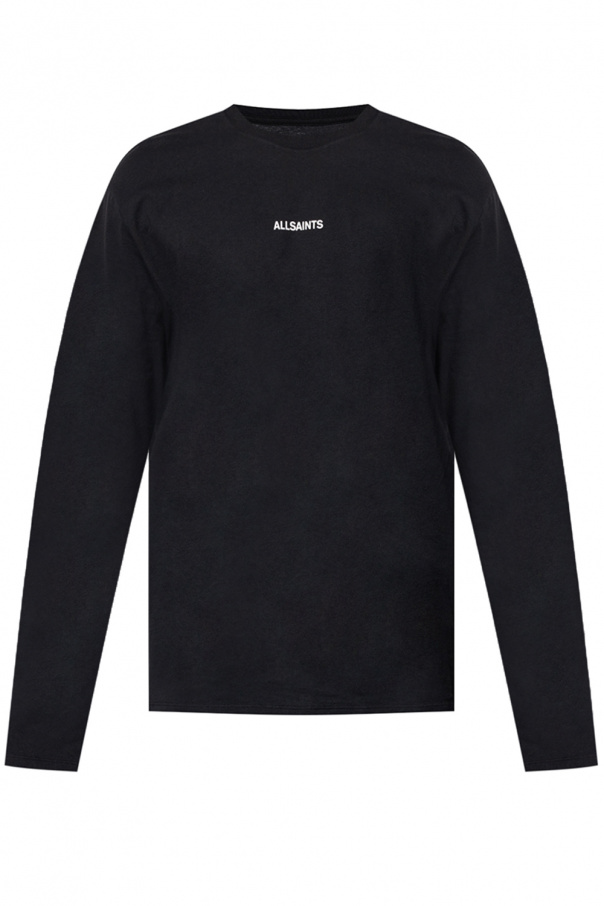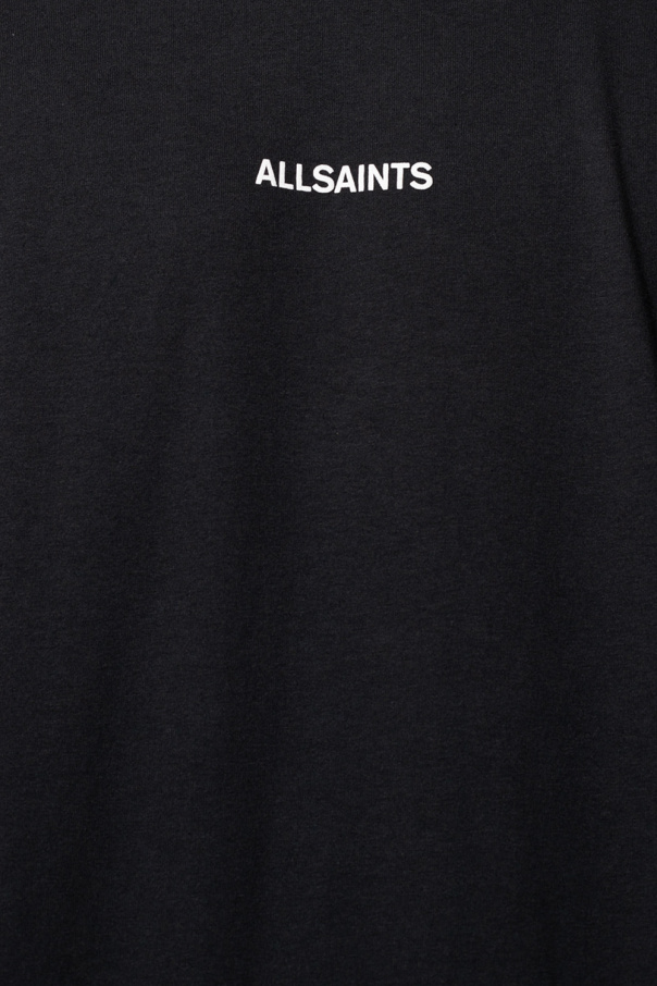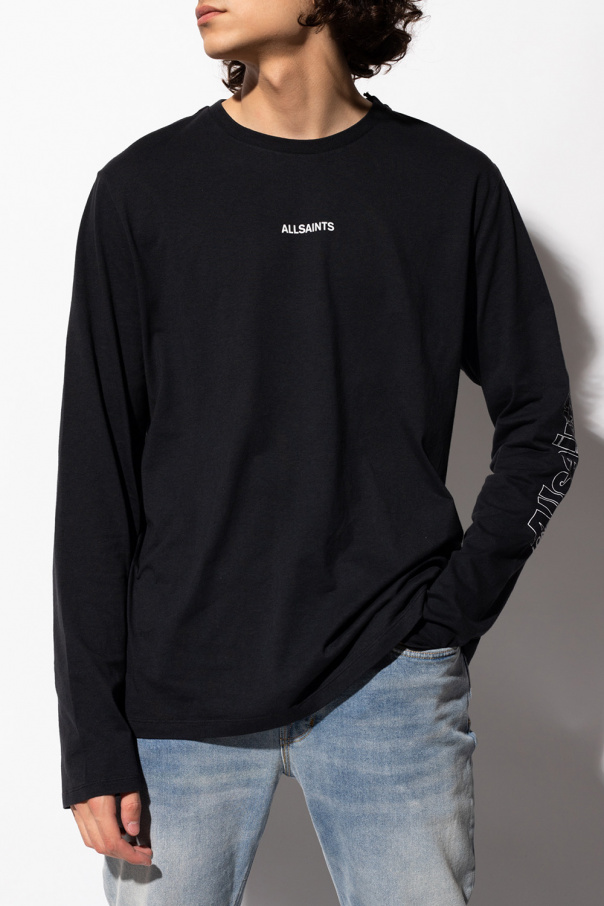 Black ‘Hollowpoint’ T-shirt from AllSaints. Crafted from cotton, this long sleeve design features a printed logo pattern in white and a ribbed round neck.