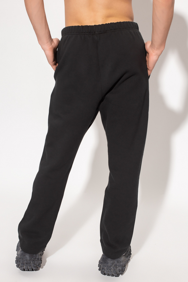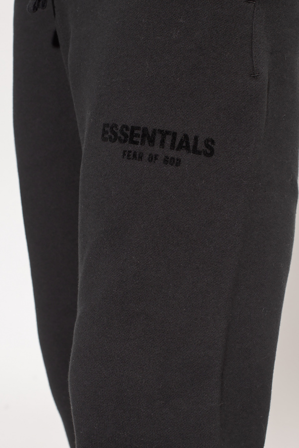 Black sweatpants from Fear Of God Essentials. Made of cotton, this pair features a drawstring waistband, a black logo pattern and two slip pockets.