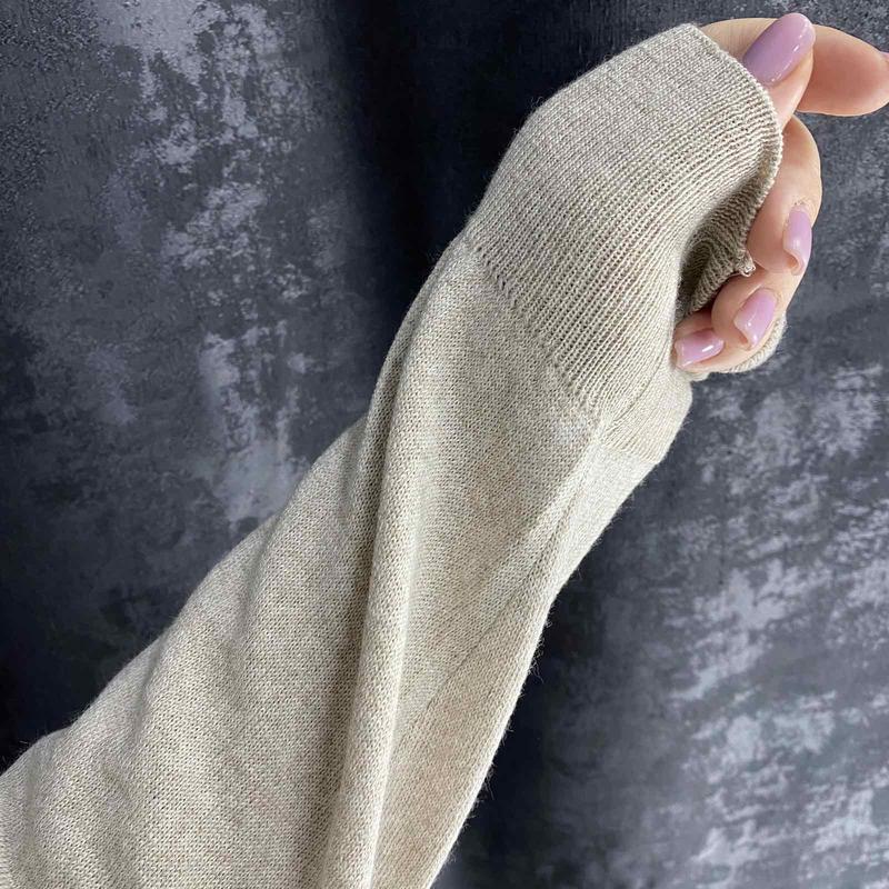 Свитер лёгкий в отличном состоянии, состав 50% шерсть, 50 % акрил. Цвет светлый бежевый. Слегка тянется, но в меру, больше пружинит. Замеры сняты в спокойном состоянии изделия.