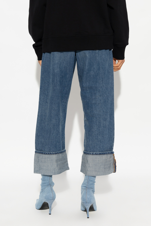 Blue ‘1999 D-REGGY L.32’ from Diesel. Cut with a loose fit, this pair falls with straight legs and features a zip fly with a button, classic five pockets, rolled-up hems and logo patches on the front and back.