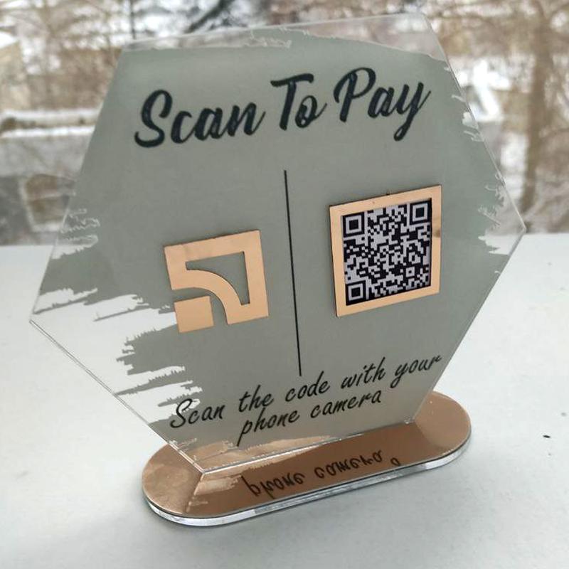 Мы предоставляем готовые QR-коды и ссылки, которые можно легко установить на нашу прочную акриловую табличку. Теперь Вашим клиентам не нужно вводить данные вручную — всего лишь один скан и оплата уже осуществлена!