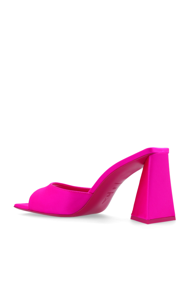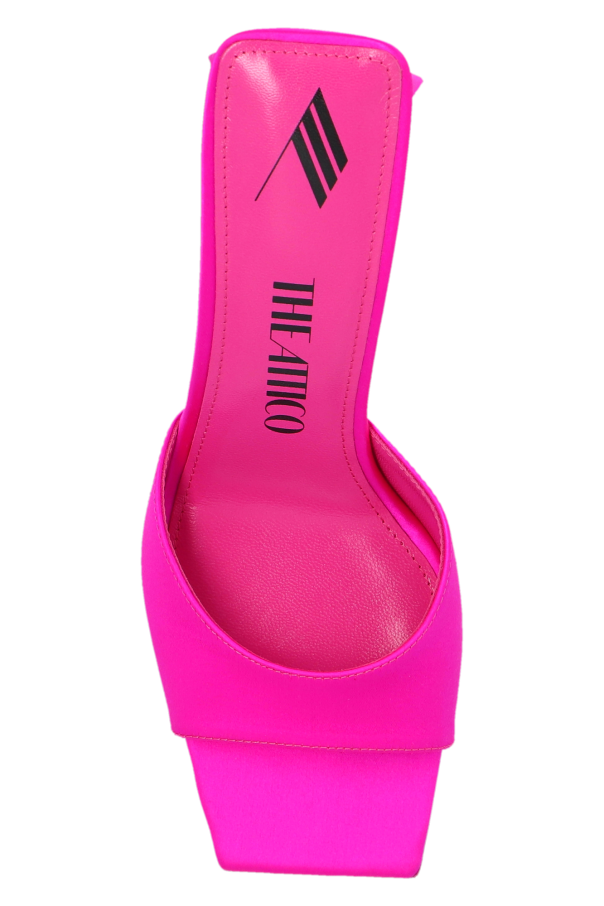 Pink ‘Devon Mini’ mules from The Attico. Made of satin, this model sits on a pink leather sole and features a square toe and a decorative heel.