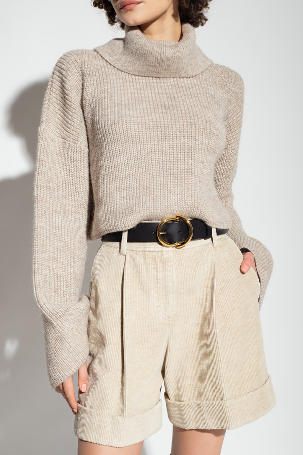 Brownish cream turtleneck sweater with long sleeves and slits sweater from Birgitte Herskind. Made of a wool and alpaca blend.