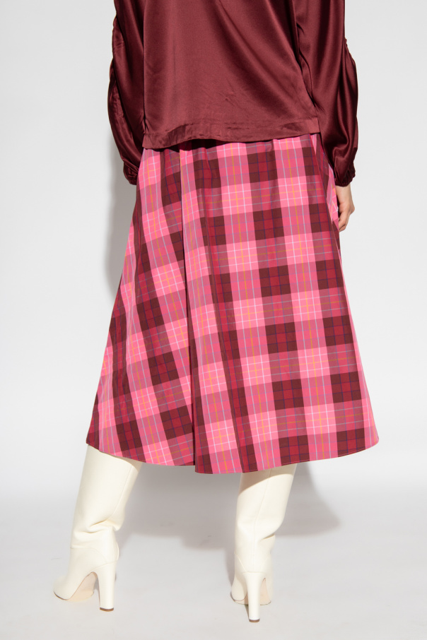 Pink and maroon skirt from Kate Spade. Crafted from checked taffeta, this style features two slip pockets and an elasticated waistband.