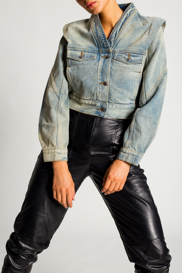 Light blue denim jacket from Iro. Cut with a cropped silhouette, this style features silver-tone button closures and two flapped pockets.