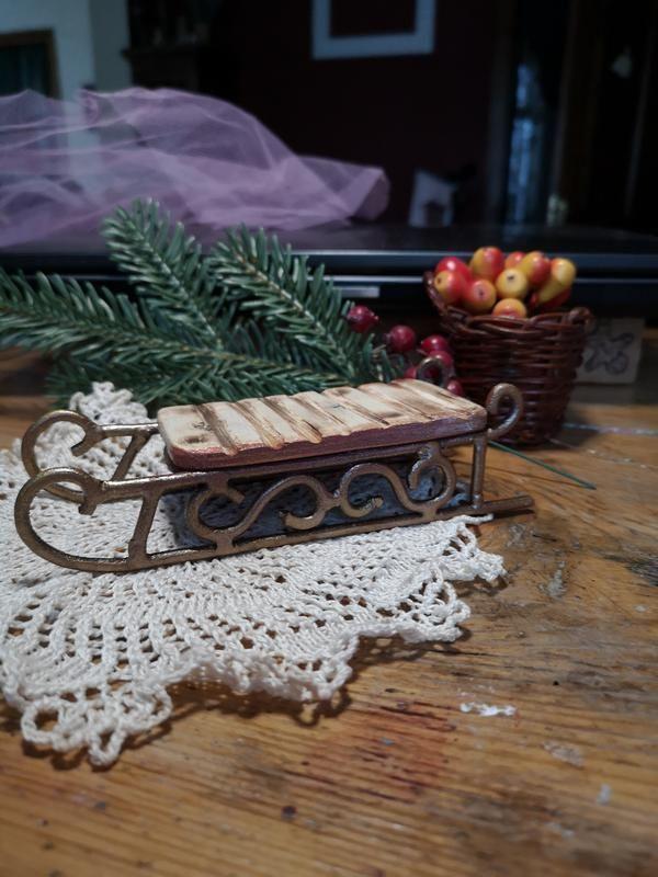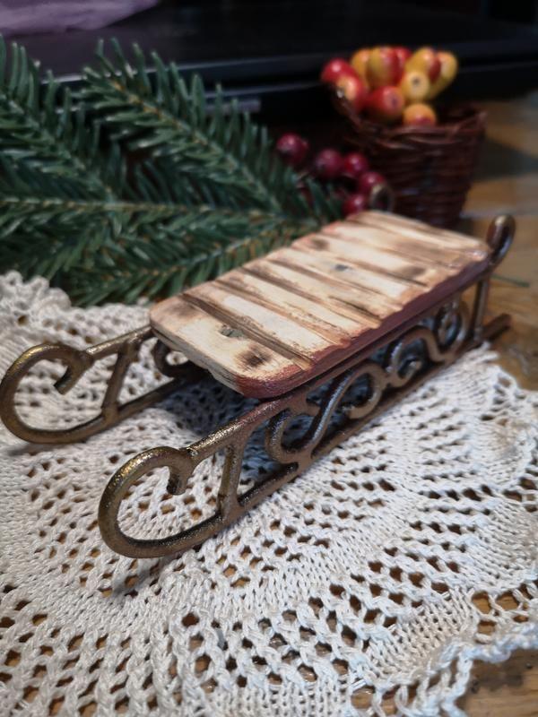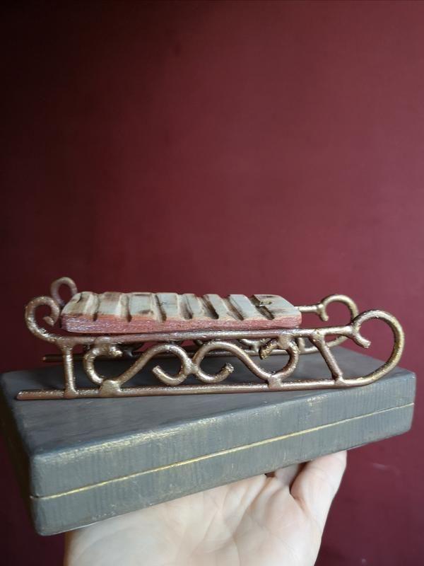 Саночки самодельные выполнены из металла при помощи сварки, деревянная седушка. Размер 16*6см