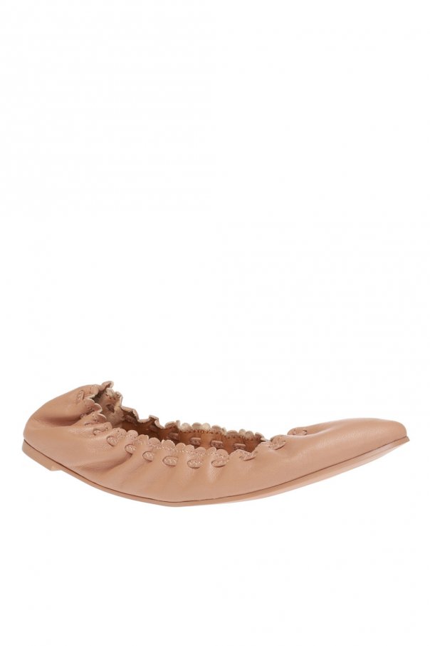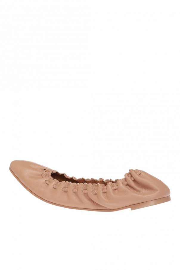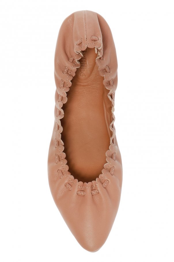 Brown ballet flats from See By Chloé. Made of leather. Enriched by woven details. Decorative trim. Brown rubber sole.