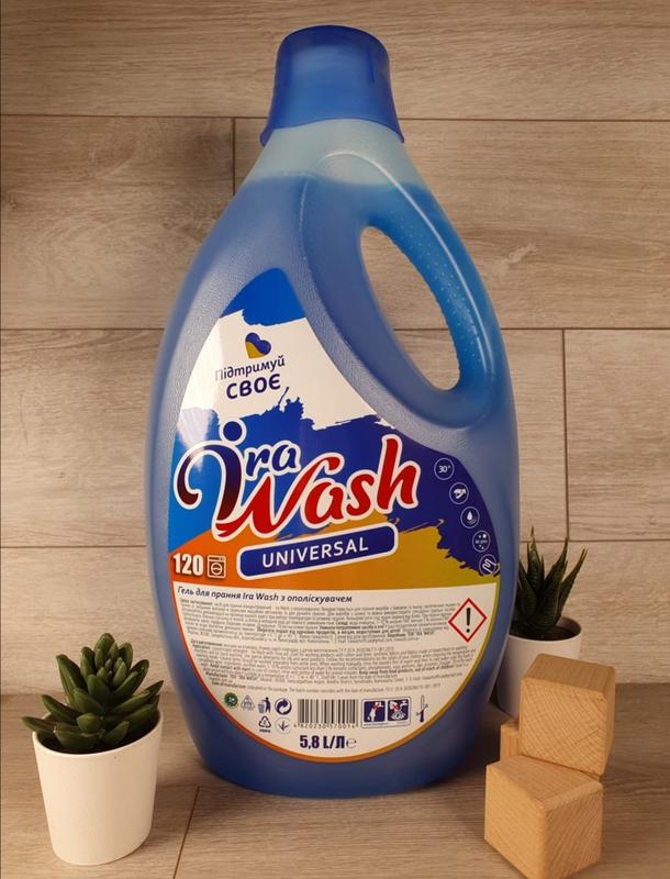 Гель для прання одягу з ополіскувачем від торгової марки Irawash має густу формулу та приємний аромат .