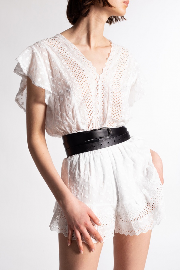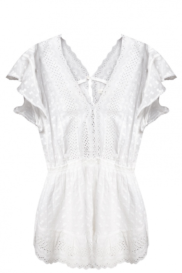 White openwork jumpsuit from Isabel Marant Étoile. Crafted from cotton, this item fastens via a button on the back and features short sleeves and an elasticated waist.