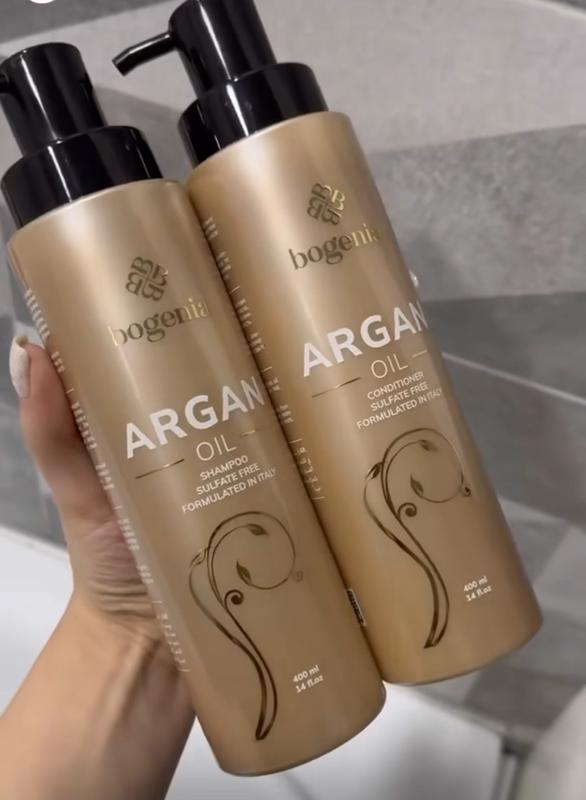 Набор Bogenia для волос с маслом арганы - это комплексный уход за волосами, обогащенный ценным маслом арганы, известным своими питательными и увлажняющими свойствами. Вот возможное описание продуктов из этого набора: