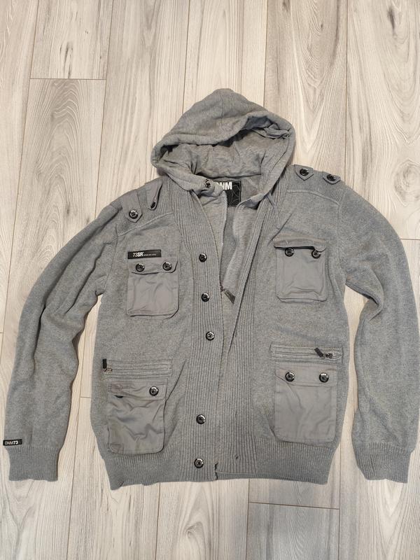 Мужская вязаная куртка 100%cotton,серого цвета.очень тёплая.с капюшоном б/у в идеальном состоянии на р46-48-50.доп фото сделаю 🤝