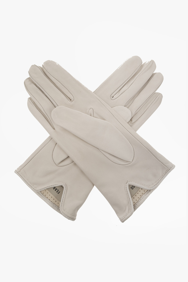 Beige gloves from Fear Of God. Made of leather, this pair features decorative stitching detailing.