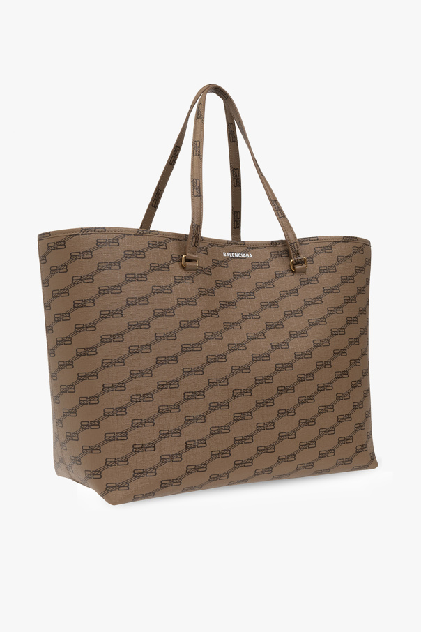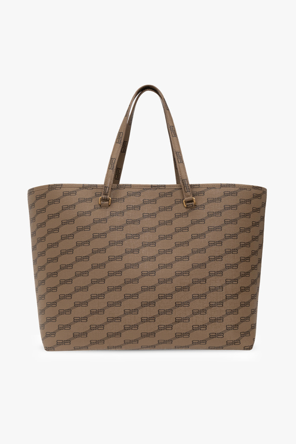 Brown ‘Signature Large’ shopper bag from Balenciaga. Crafted from coated canvas with the brand's ‘BB Icon’ monogram, this design features a lobster clasp fastening, a printed white logo on the front, two half-round handles, gold-tone metal hardware and one internal compartment with one slip pocket and one zip pocket.