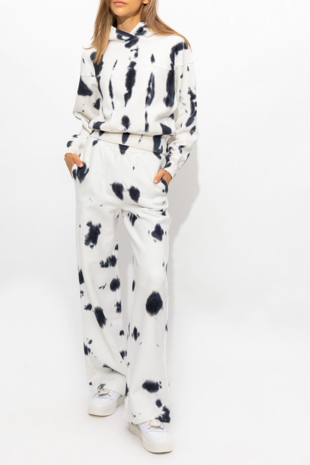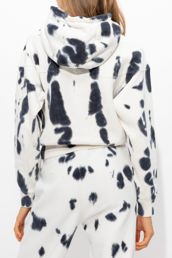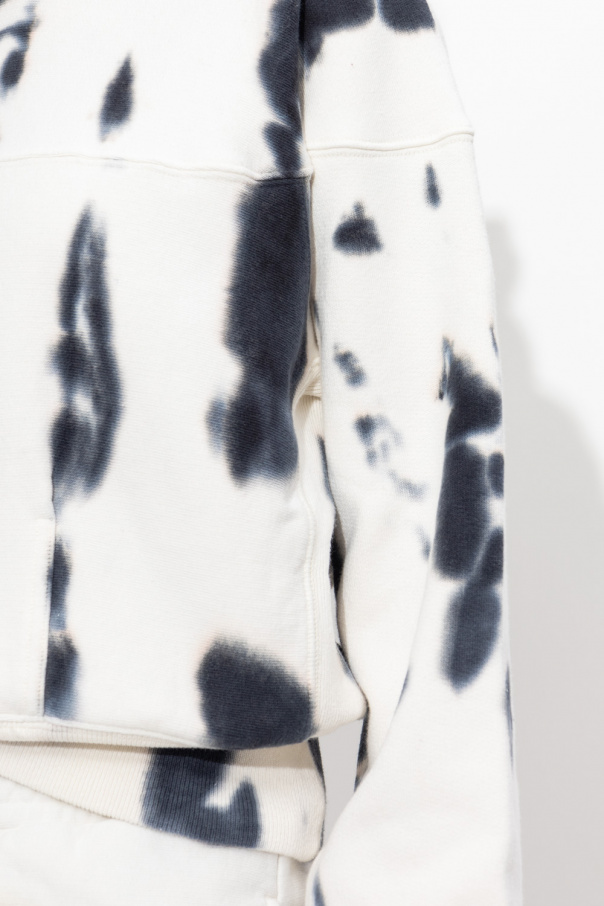 White and navy hoodie from Champion. Crafted from cotton, this design features a tie-dye effect, sleeve patch with a logo, decorative stitching at the hem and ribbed trims at the hem and cuffs.