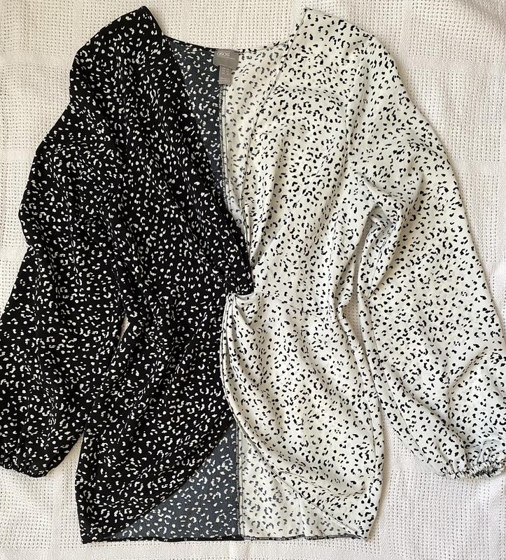 Блуза с далматинским узором с длинным рукавом и закрученной передней частью. Размер 10-12