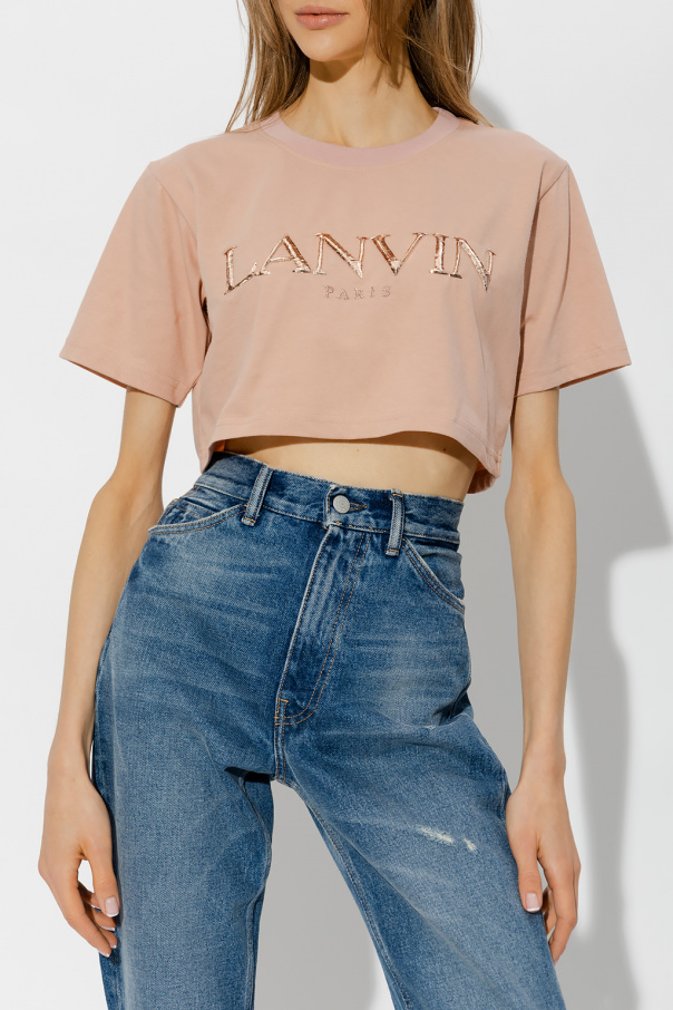 Blush pink cropped T-shirt from Lanvin. Crafted from cotton, this short sleeve design features a logo embroidery and ribbed crew neck.